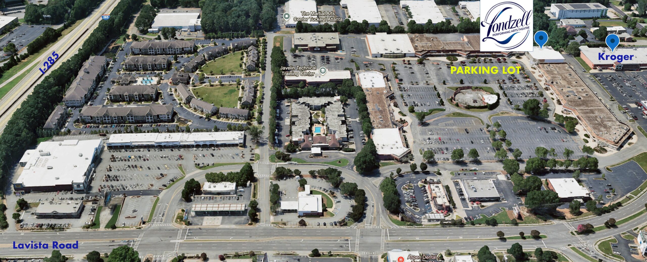 - Londzell Performing Arts Theatre is located in the back far right corner of the shopping center (as shown below).